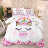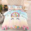 Cute Unicorn Feather Silk Cotton Filled Quilt Kids Cartoon Autumn and Winterheattechbedding Printing Quilt Cover Three-piece Set