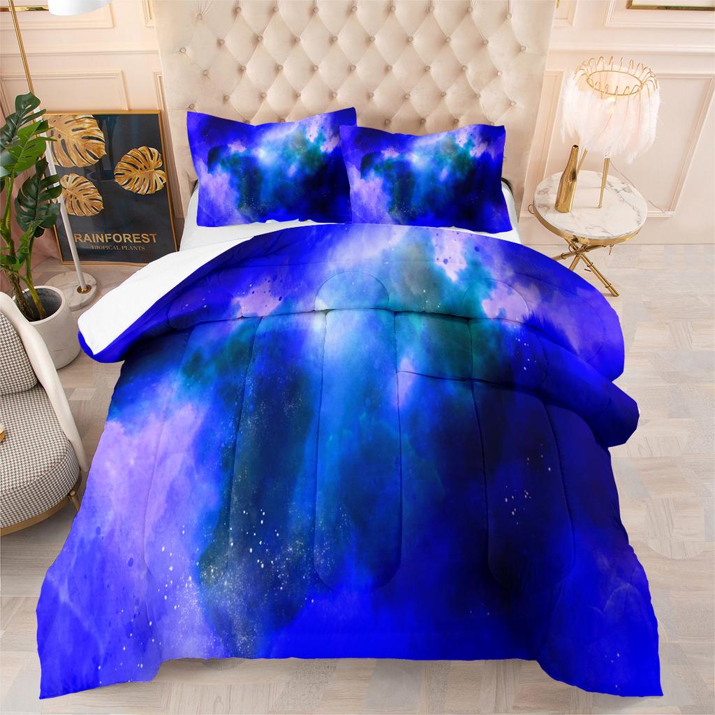 Constellation Starry Sky Universe Planet 3d Digital Printing Feather Silk Quilt Fat Quilt Cover Three-piece Set