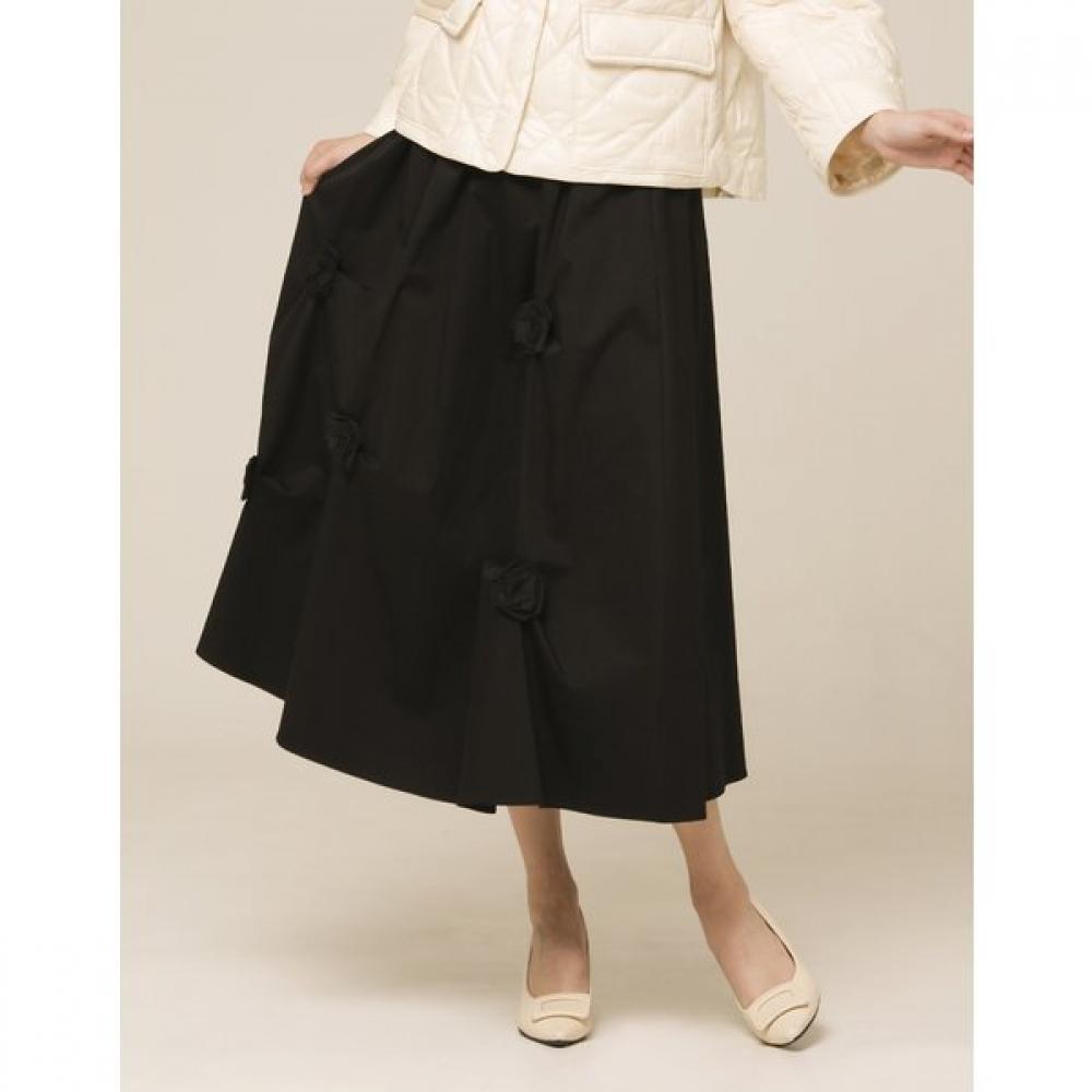 The 3D Flower Shirring Skirt ZDK6161040 creates a flattering silhouette with its waist shirring detail. The 3D flower embellishments on the front add a unique point while completing a voluminous overall line. It pairs well with various tops and provides a stylish touch even when worn alone.
