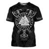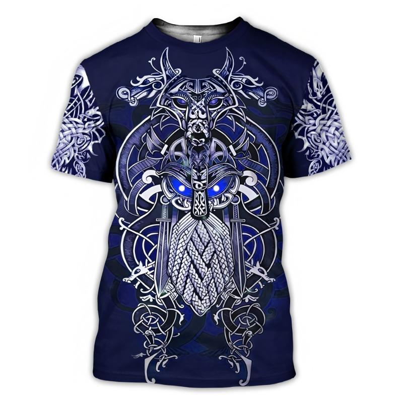 Trendy Men's Clothing Graphic T-shirts 3D Digital Printing Viking Element Pattern Short Sleeved Loose Round Neck Top for Men
