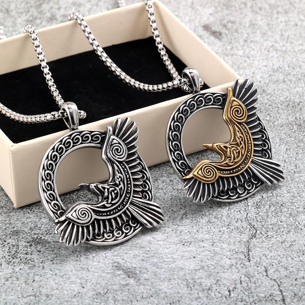 Viking Raven Celtic Knot Single Sided Stainless Steel Unisex Pendant Necklace