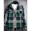 Spring and Autumn New Style Elegant Lapel Checkered Men's Shirt Retro Brushed Casual Long Sleeve Jacket