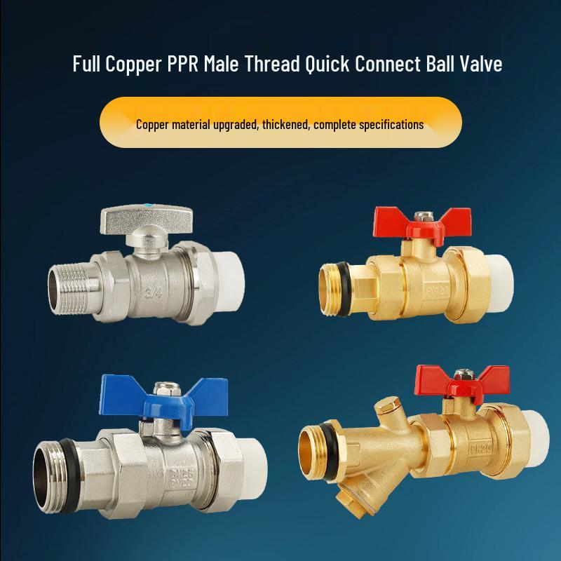 All-Copper PPR Male Thread Double Union Ball Valve for Water Pipes - Compatible with 4, 6, 20, 25, and 32 Points.