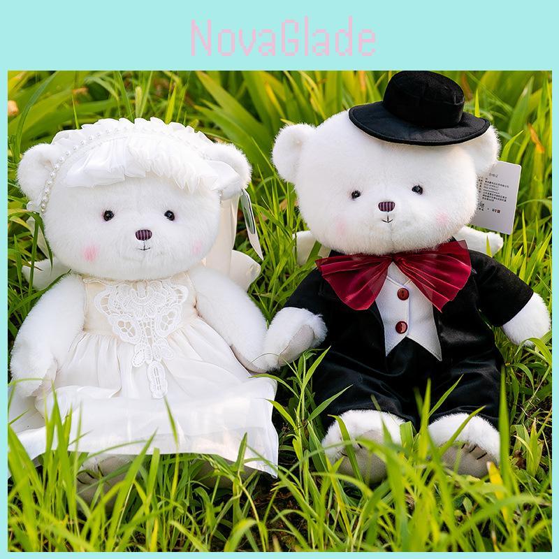 Adorable Couple Angel Bear Plush Toy Wedding Dolls For Romantic Celebrations