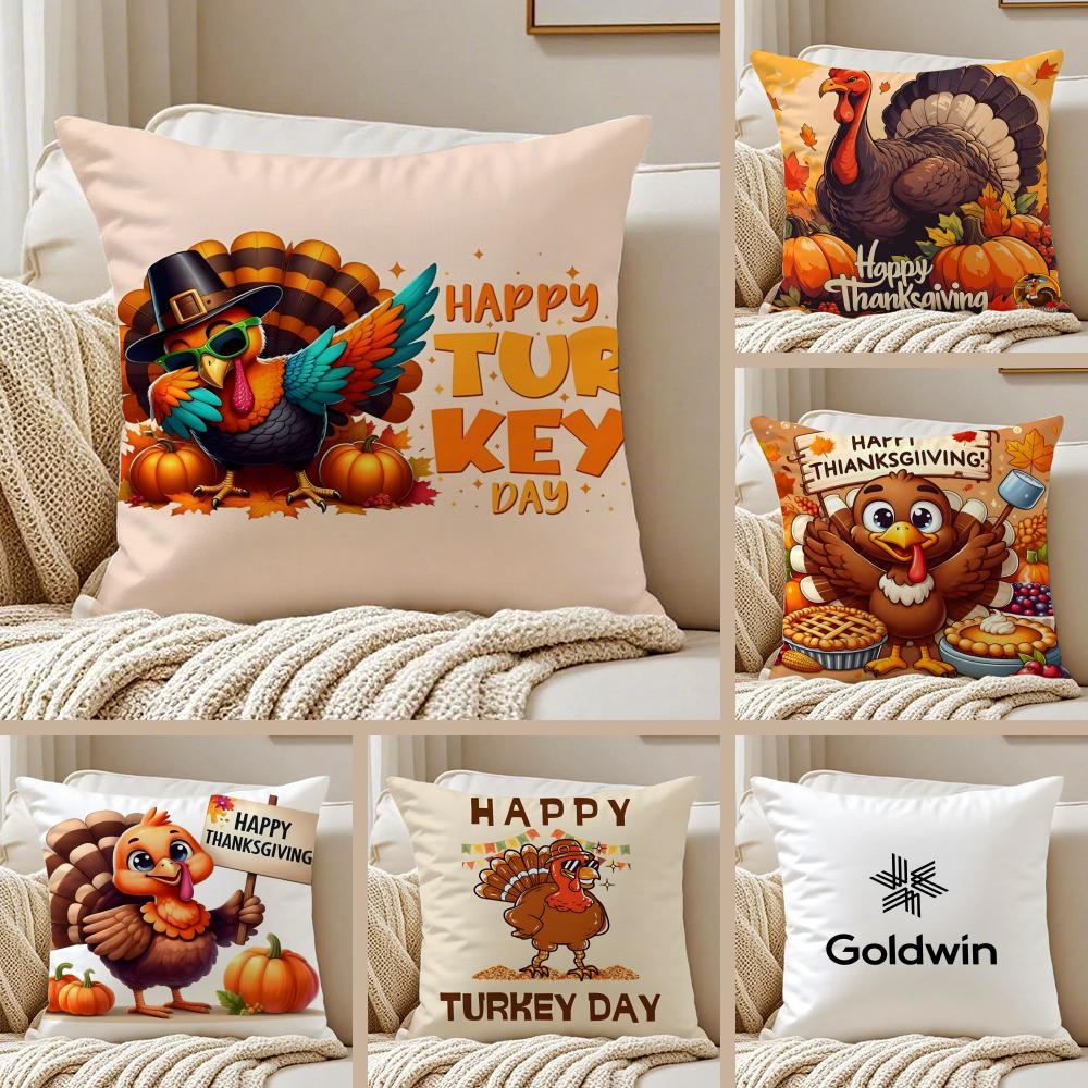 Thankful Festival Turkey Cushion Cover Pillowcase Antidustmite Invisible Zipper Short Plush Sofa Cushion