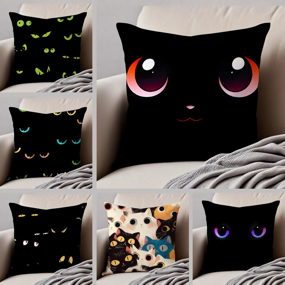 Cute Art Cat Eyes Cushion Cover Throw Pillow Cover Hidden Button Durable Polyester Chair Cushion