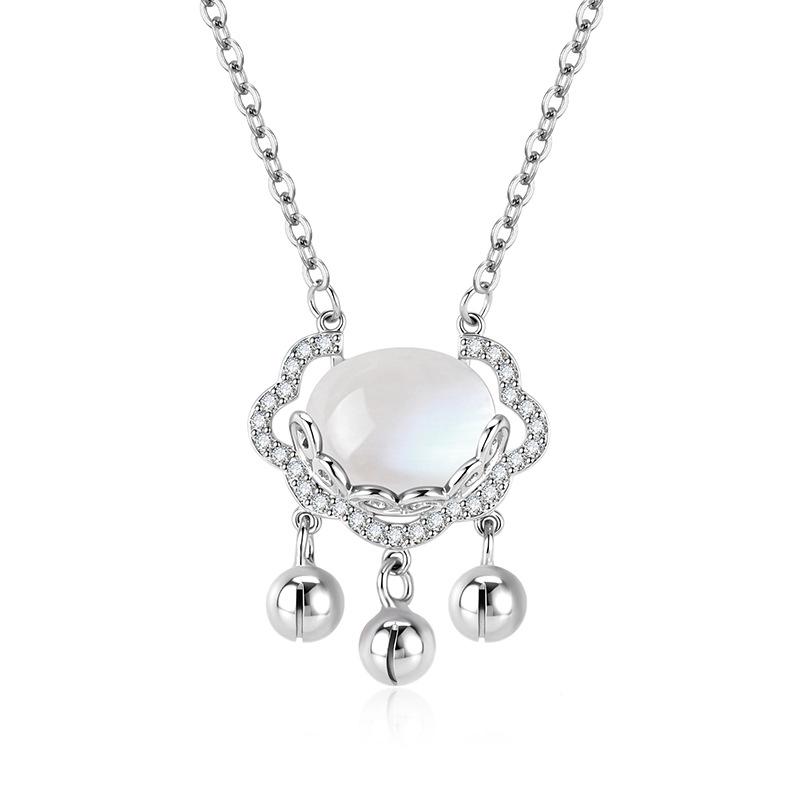 Agate Peace Lock S925 Sterling Silver Necklace – Auspicious Cloud Longevity Pendant for Women