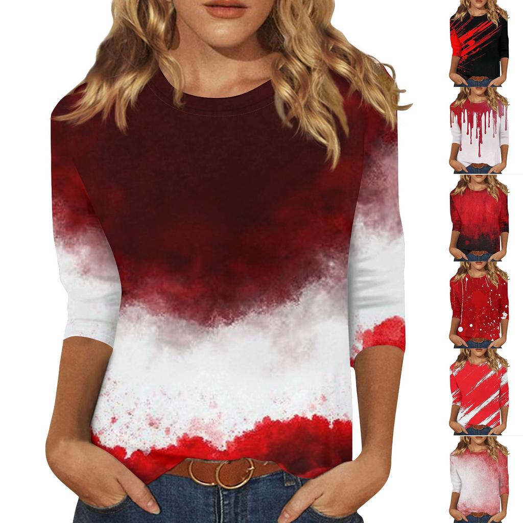 Women's Fashion Casual Three-quarter Sleeve Halloween Printed Round Neck Top