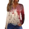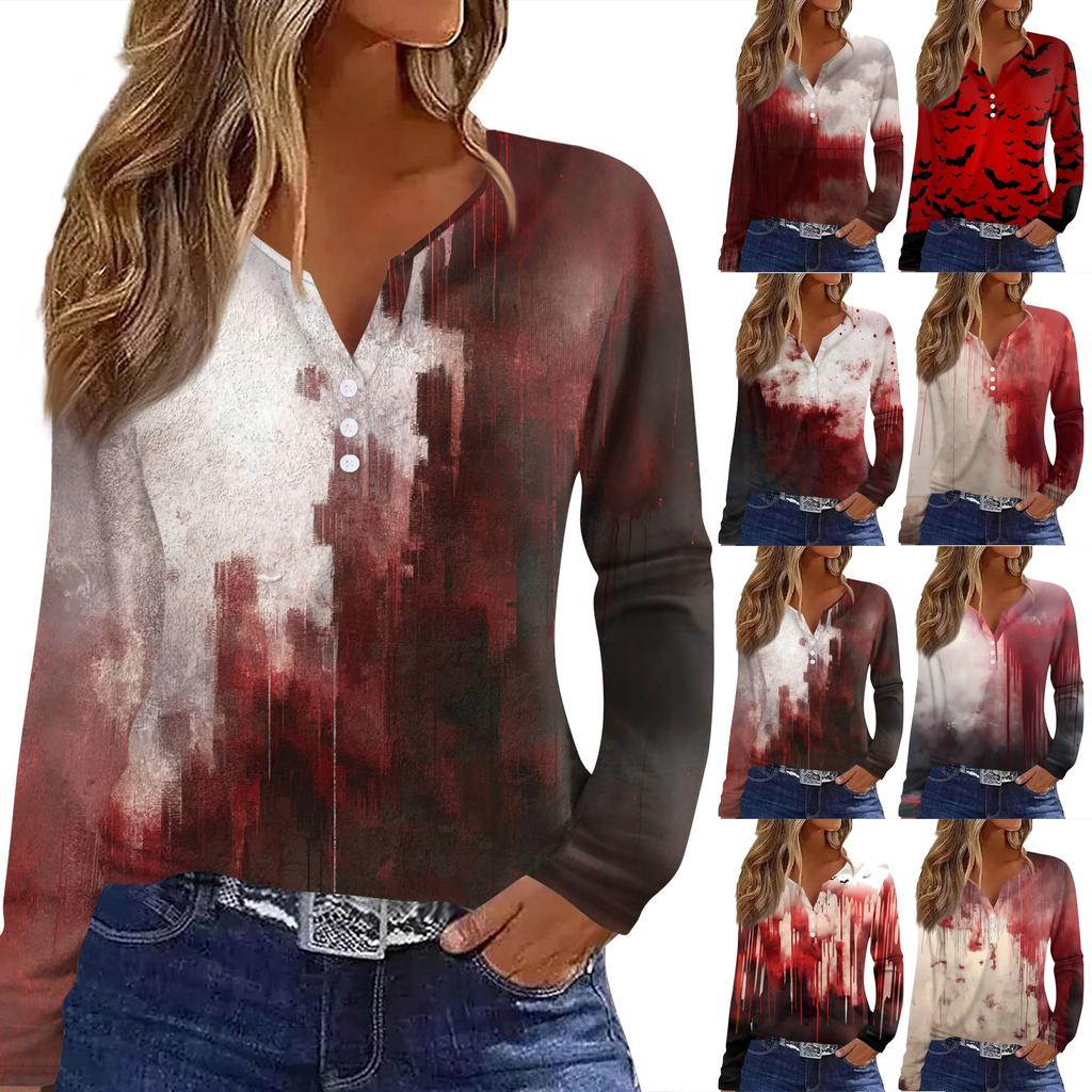Women's T Shirt Tee HAlloween Print Button Long Sleeve Daily Weekend Fashion Basic V- Neck Regular Top