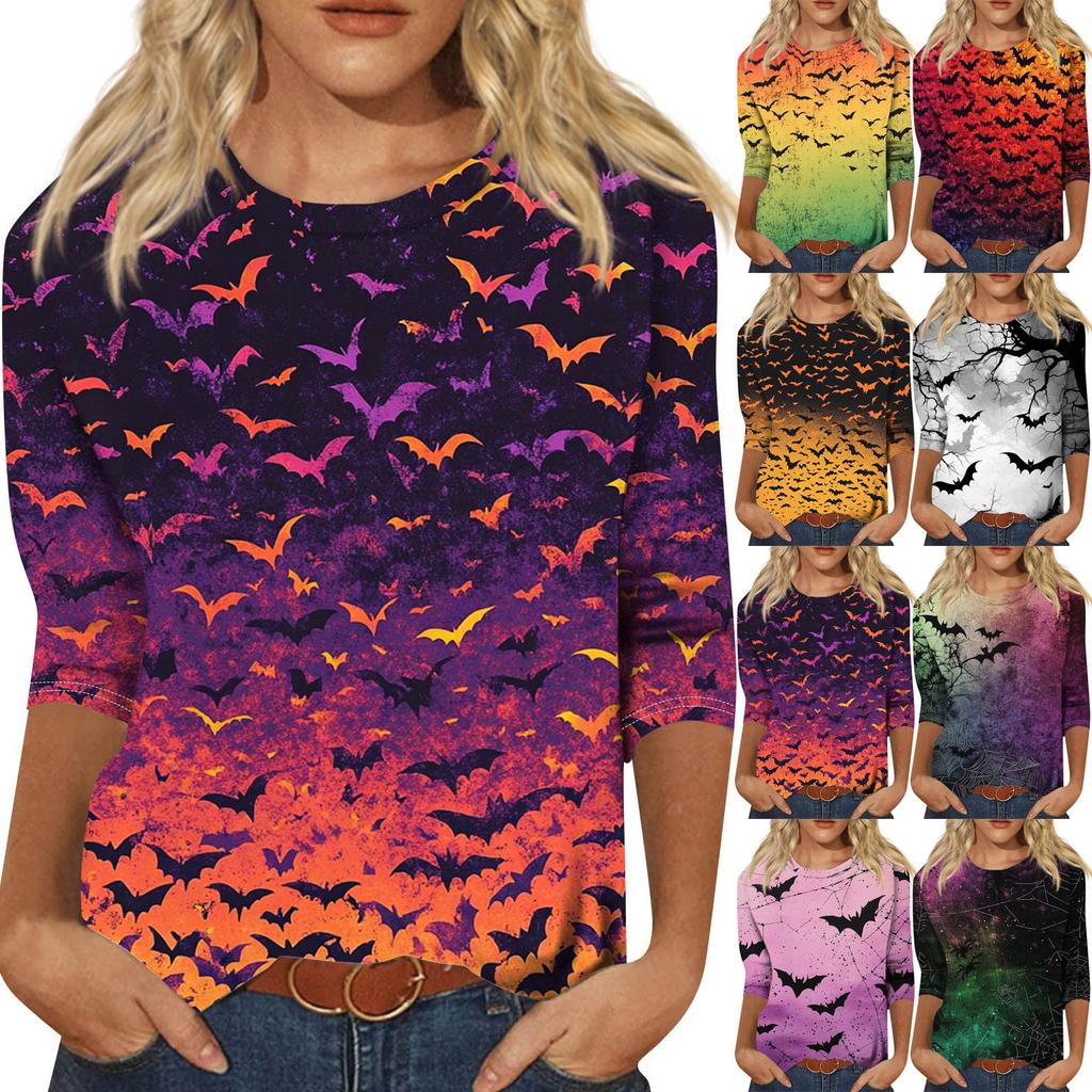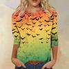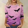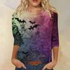Women's Fashion Casual Round Neck 3/4 Sleeve Loose Printed T-Shirt Ladies Top