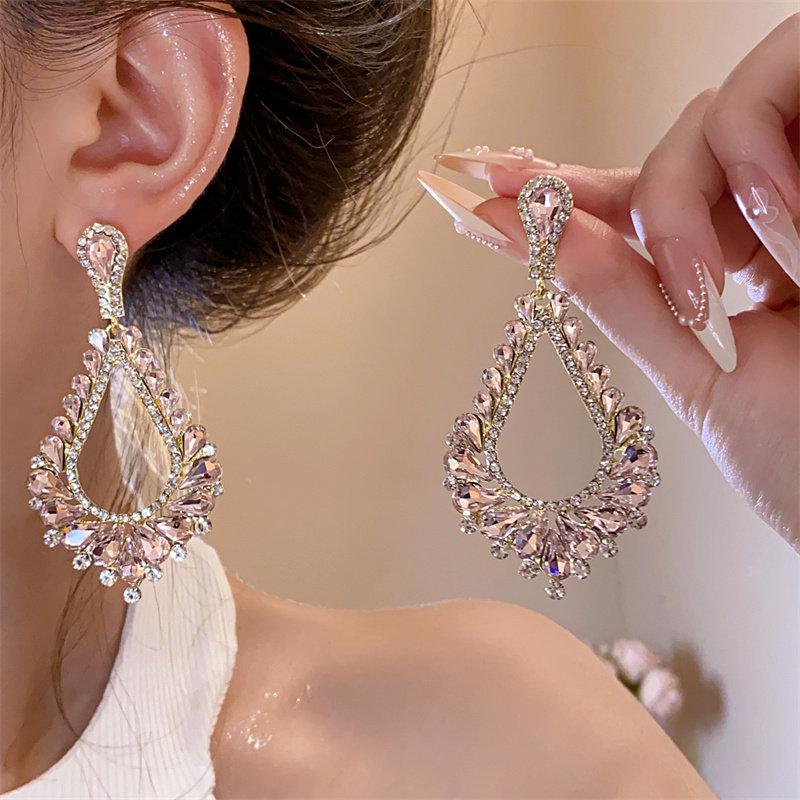Rhinestone Teardrop Hollow Earrings with Silver Needle - Luxurious, High-End Court Style