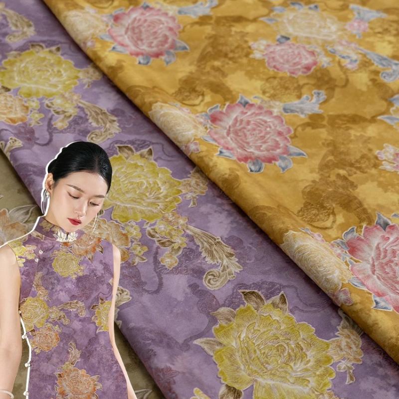 Retro Fragrant Cloud Gauze Flower Lily Jacquard Fabric Chinese-style Dress Fluffy Skirt Tote Bag Decorative Sewing Fabric