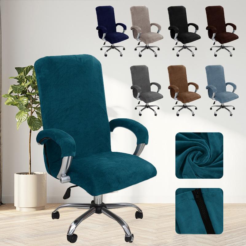 Solid Color Spandex Armchair Slipcover Removable L/XL Size Velvet Plush Stretch Computer Office Chair Cover with Armrest Cover
