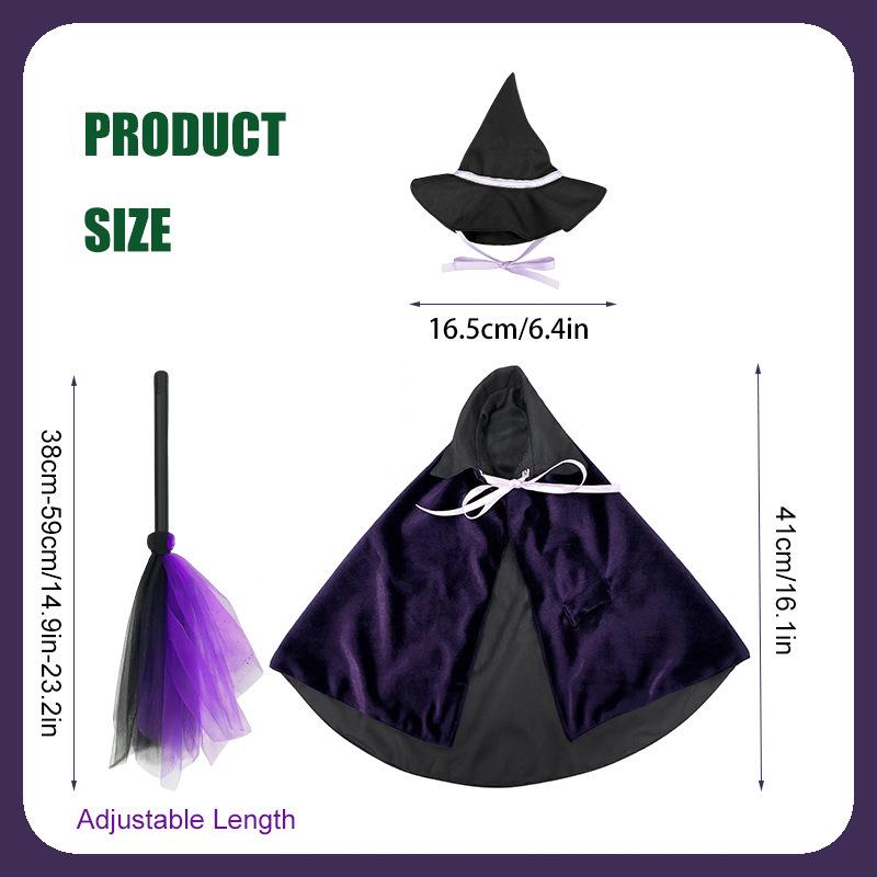 Porch Goose Halloween Purple Velvet Witch Cloak with Broomstick for Dogs