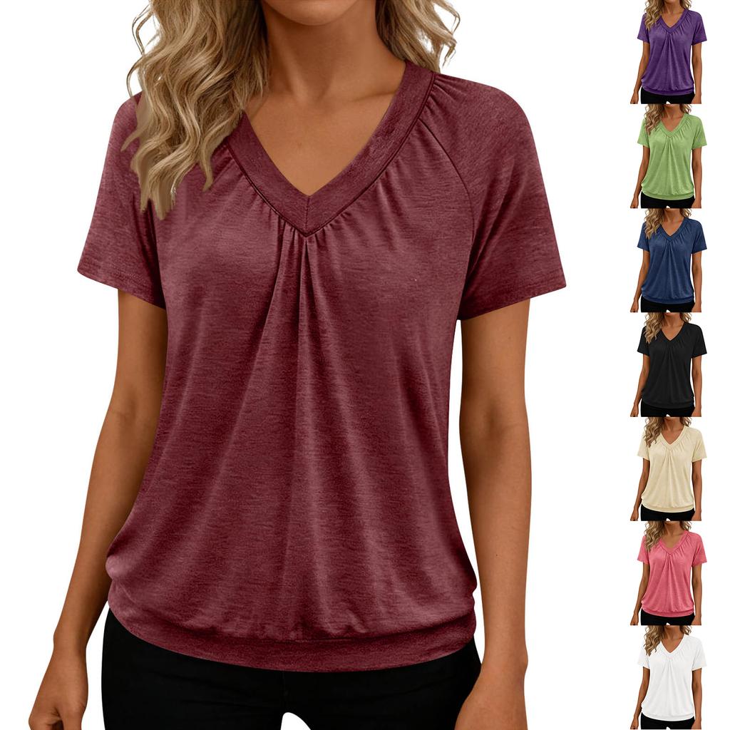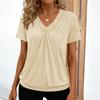 Women's Casual -Color V-Neck Loose-Fit Short-Sleeve Pullover