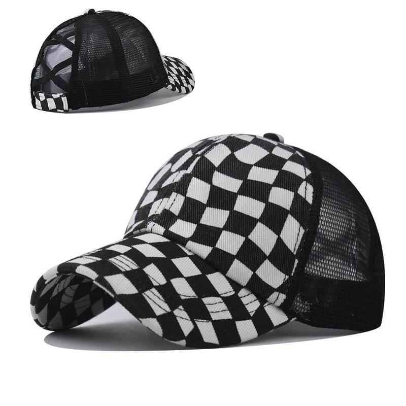 Checkered Mesh Baseball Cap for Men Women, Retro Plaid Trucker Hat with Breathable Net