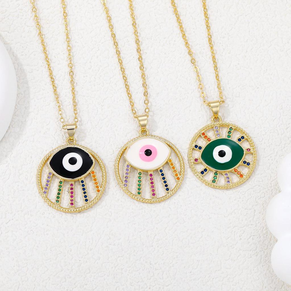 Colorful Evil Eye Pendant Necklace with Rhinestone Inlay - European & American Fashion Lucky Charm