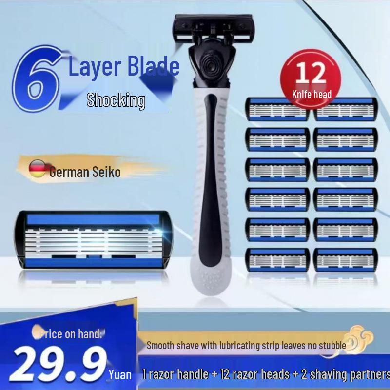 6-Layer Ultra-Thin Men's Razor with Replaceable Anti-Scratch Heads