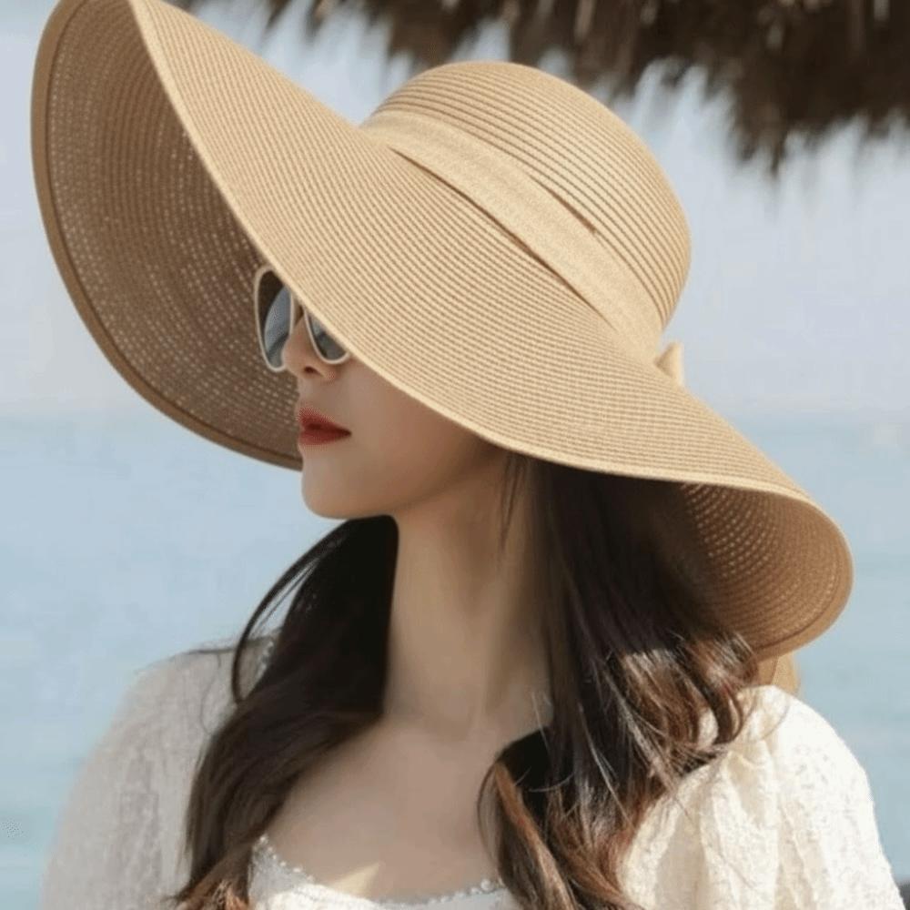 Oversize Straw Sun Hat Wide Brim Sun Protection Hat Simple Weave Sun Cap Woman