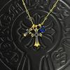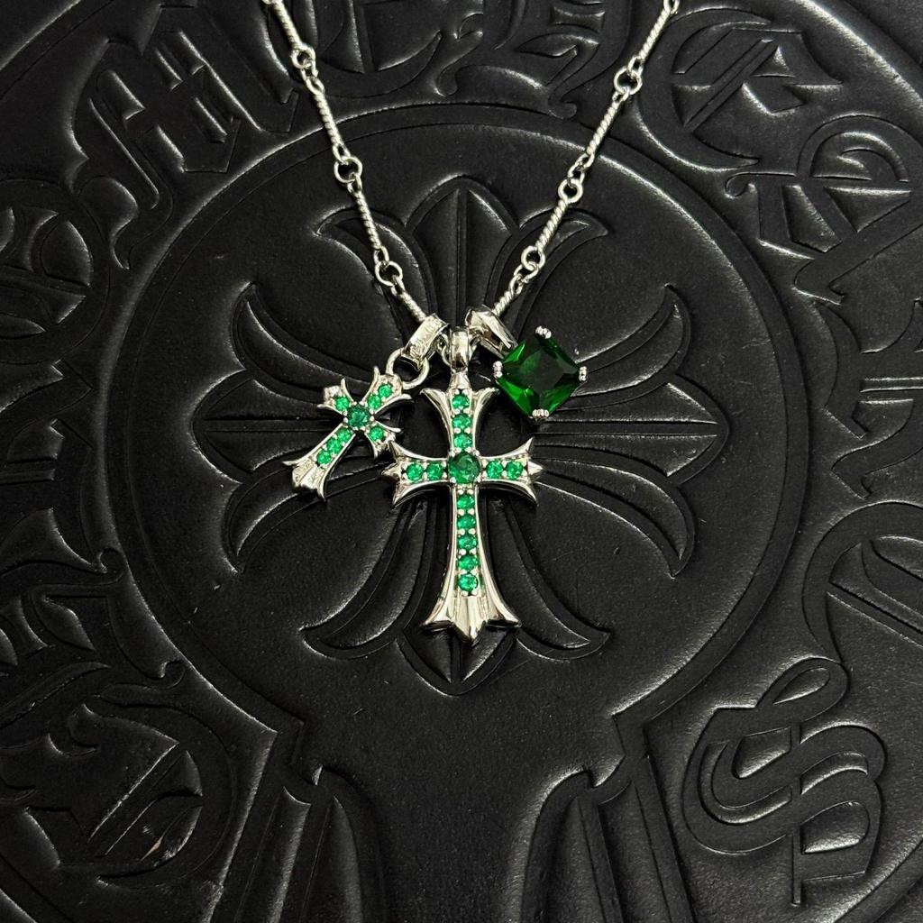 Chrome Hearts Retro Distressed Double Cross Square Pendant Necklace - Unisex Fashion Accessory