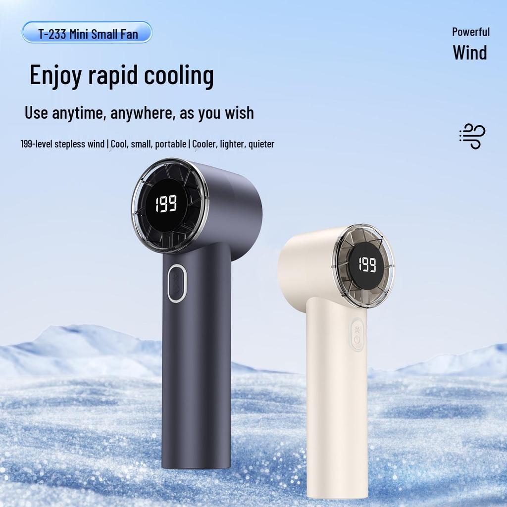 T233 High-Speed USB Rechargeable Handheld Fan with Digital Display