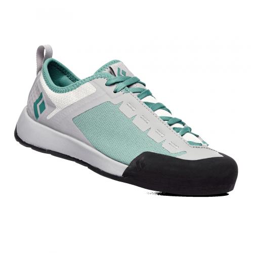 Engineered for precision, the Black Diamond Fuel provides exceptional climbing performance for technical approach sections. The upper, constructed from highly breathable Enduro Knit, durable stretch woven panels, and a fused TPU film, offers outstanding resilience while minimizing foot fatigue during extended wear. An integrated tongue design reduces bulk and ensures a snug, comfortable fit. The lacing system, featuring webbing and fan-shaped eyelets, allows for an optimized, adjustable fit tailored to your foot. Enhanced toe structure boosts edging capabilities crucial for climbing, complemented by the high-traction BlackLabel-Mountain Rubber for powerful grip. For seamless transitions, wide webbing loops on the tongue and heel enable convenient attachment to a backpack or harness via carabiner when you switch to climbing shoes or sandals.