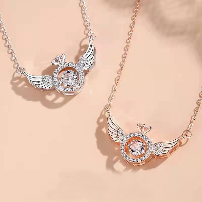1 PC Design Angel Wings Necklace with Crystals Sweet Jewelry Gift for Women Girls Girlfriend