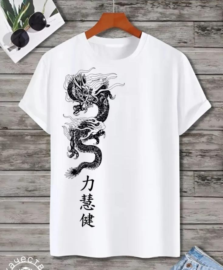 Summer Men's Loose Casual Short-Sleeved Round Neck Printed Top
