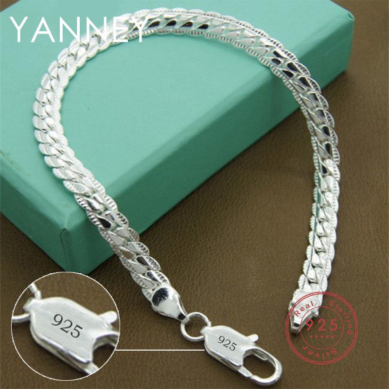 Fine Silver Color Bracelet 8 Inches 6MM Side Chain Bracelet for Women Men Fashion Wedding Party Gift Jewelry Accessories