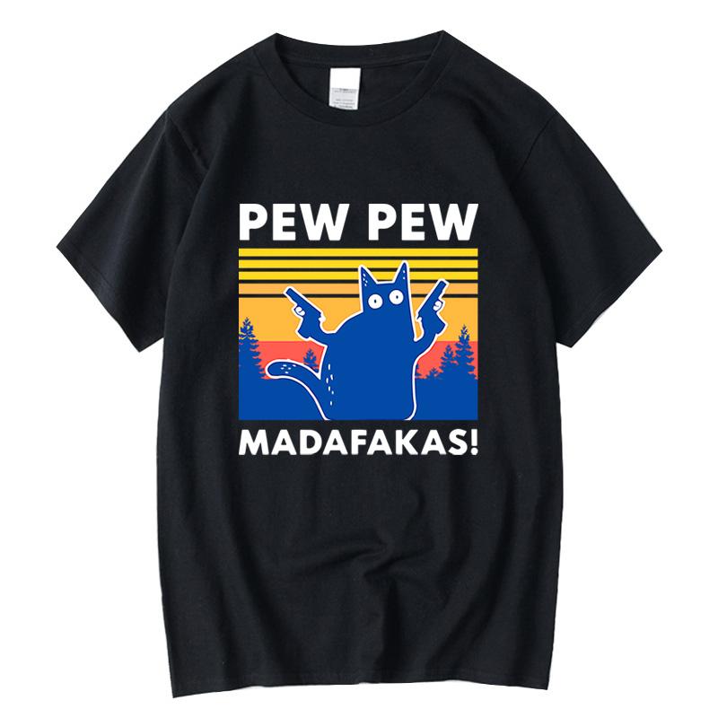 Pew Pew Madafakas Tshirt Men Short Sleeve Novelty Funny Cat T Shirt Cotton Loose Top Shirts Tee TShirt Summer Casual Loose Male