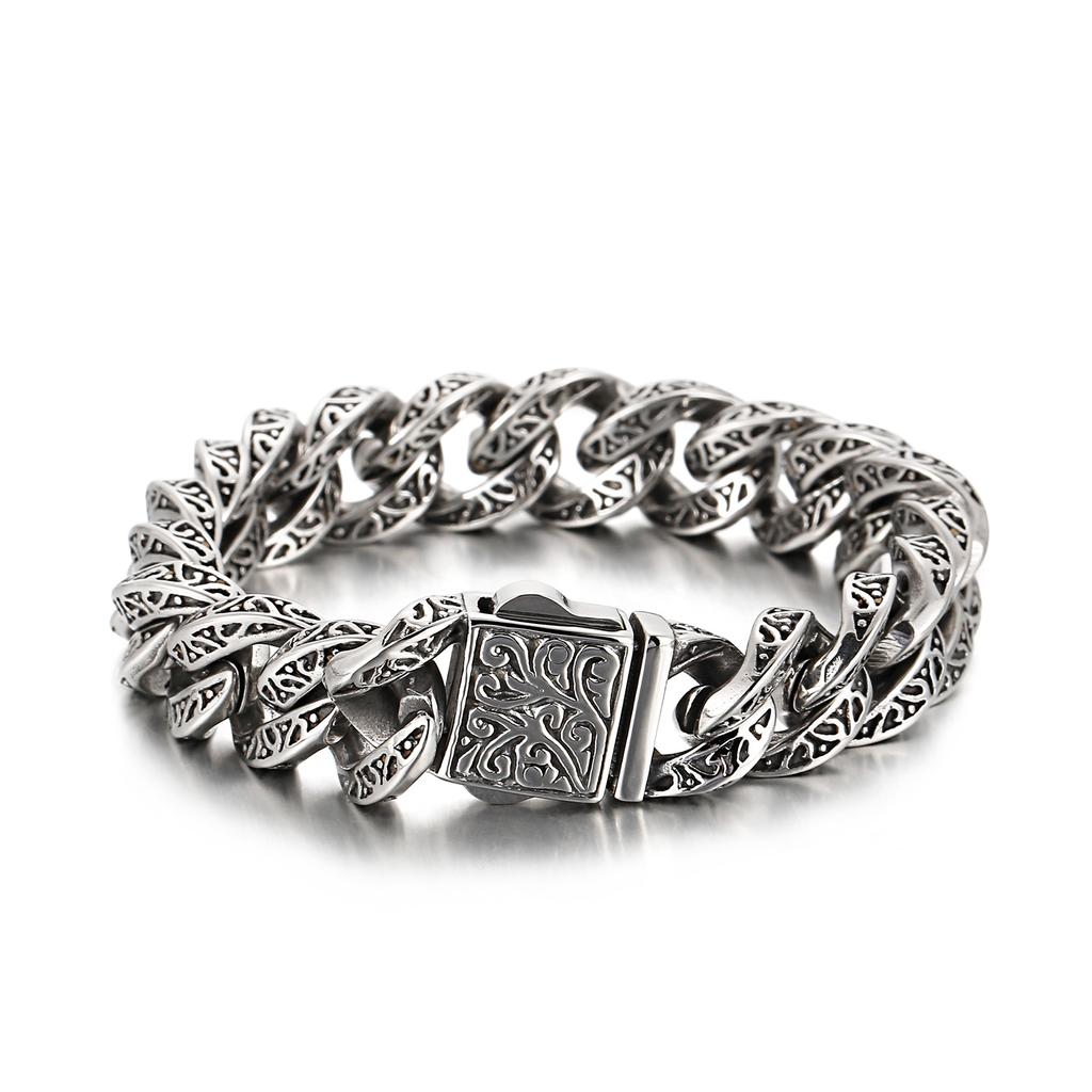 Vintage Sculpture Cuban Cuff Bracelet Stainless Steel Custom Charms Curb Link Chain Men Bracelets