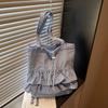 Casual Plaid Ruffle Design Shoulder Bags for Women High Capacity Ladies Tote Bag College Style Girls Drawstring Shopping Handbag