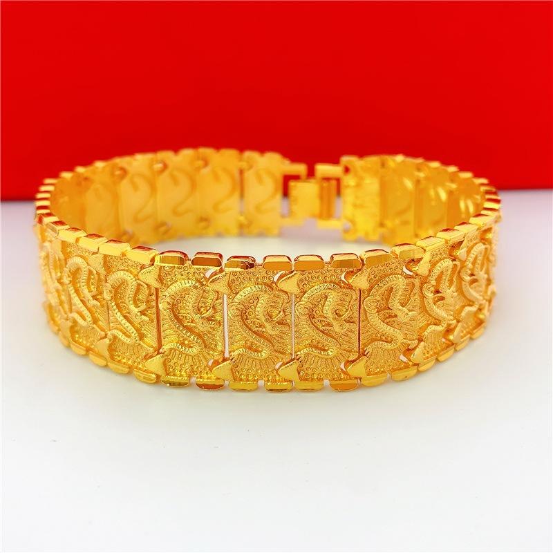 Bold Macho Thick Dragon Pattern Couple Bracelet 24K Gold AU999 - Thick Bold Design, 3D Dragon, Matching Couple Style
