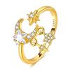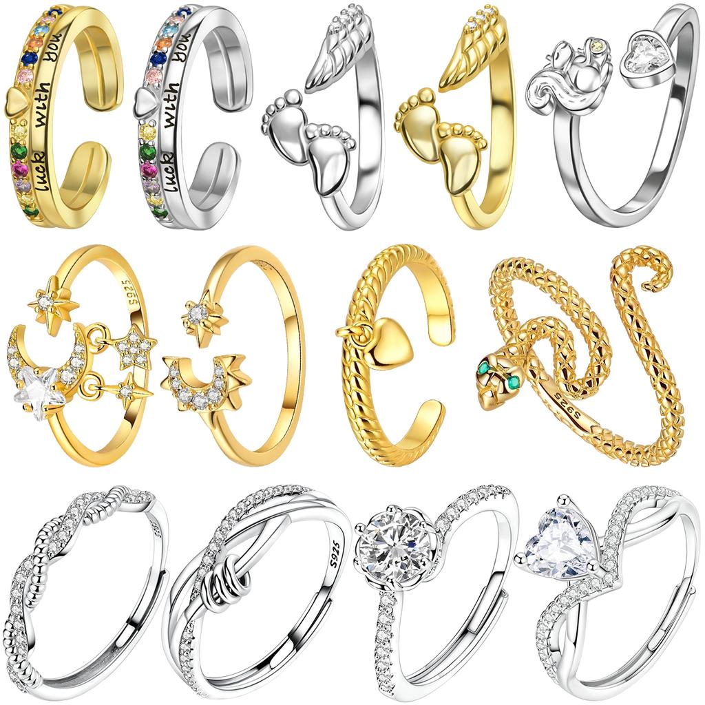925 Silver Open Ring Star & Moon Foot Claw Heart Adjustable Ring For Women Wedding Birthday Party Jewelry Gift
