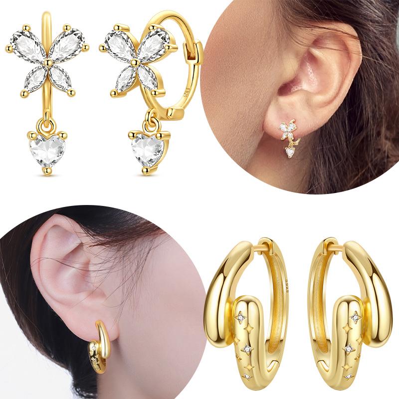 925 Silver Butterfly White Zircon Heart Ear Ring Starry Simple Women's Earrings Gift Woman Jewelry Fine Gift
