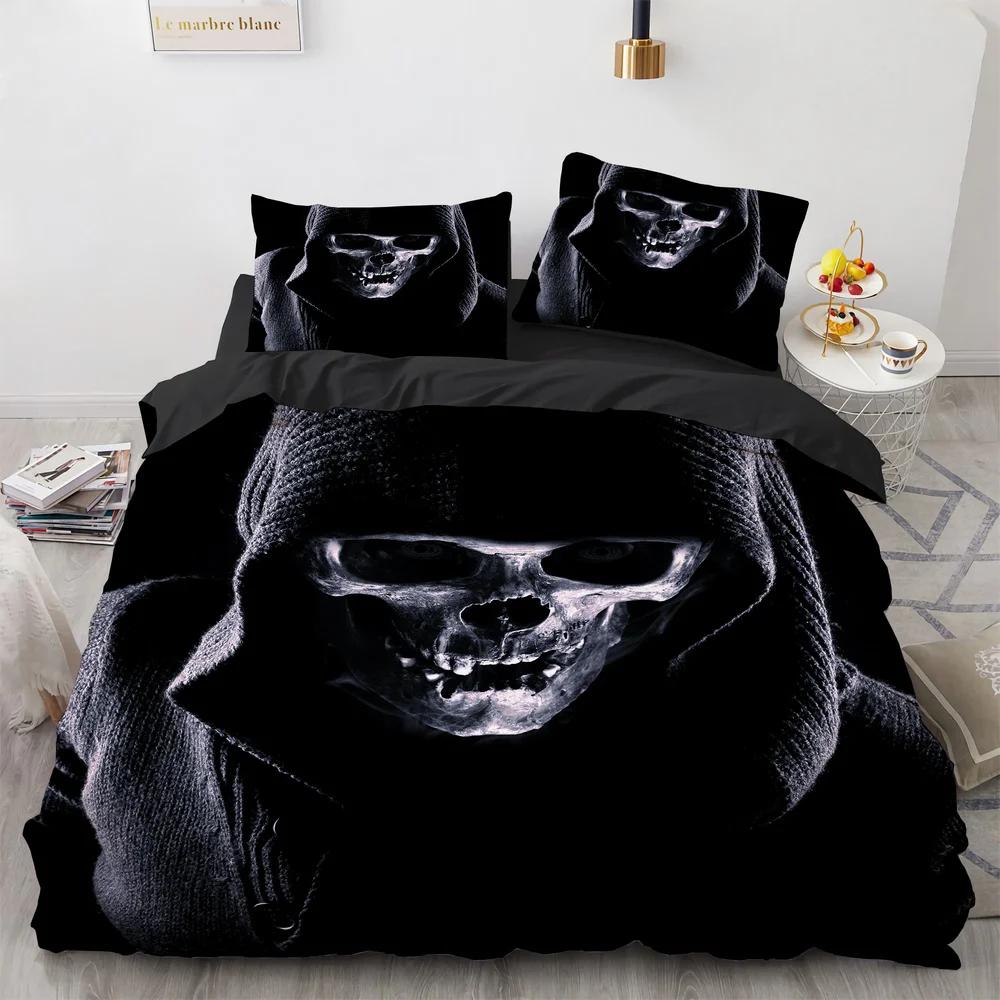 Comforter Black Hat Skull Bedding Set Queen Size Halloween S Modern Style Bedroom Bedding Set Comforter Pillow Shams