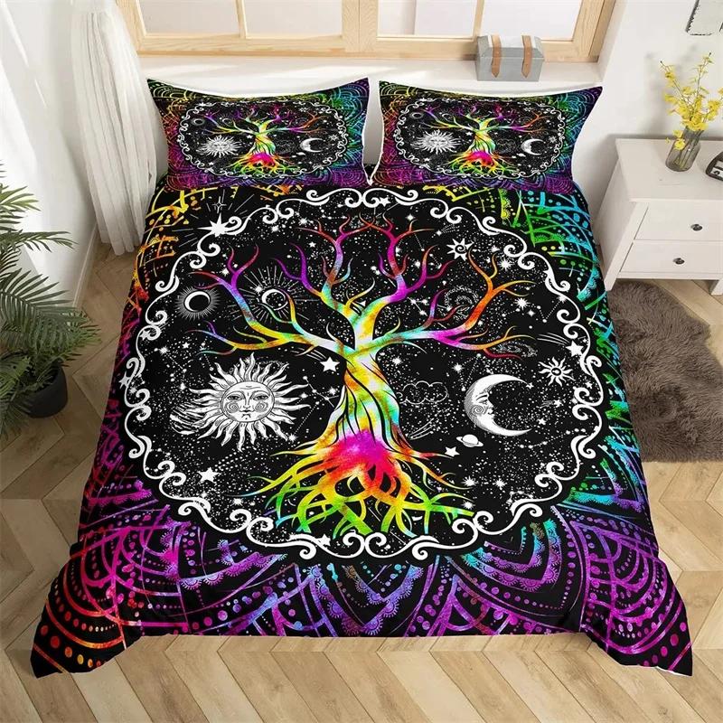 Comforter Moon And Sun Black And White Bedding Soft Tree Of Life All Galaxy Stars Mandala Tribal Decor For Women