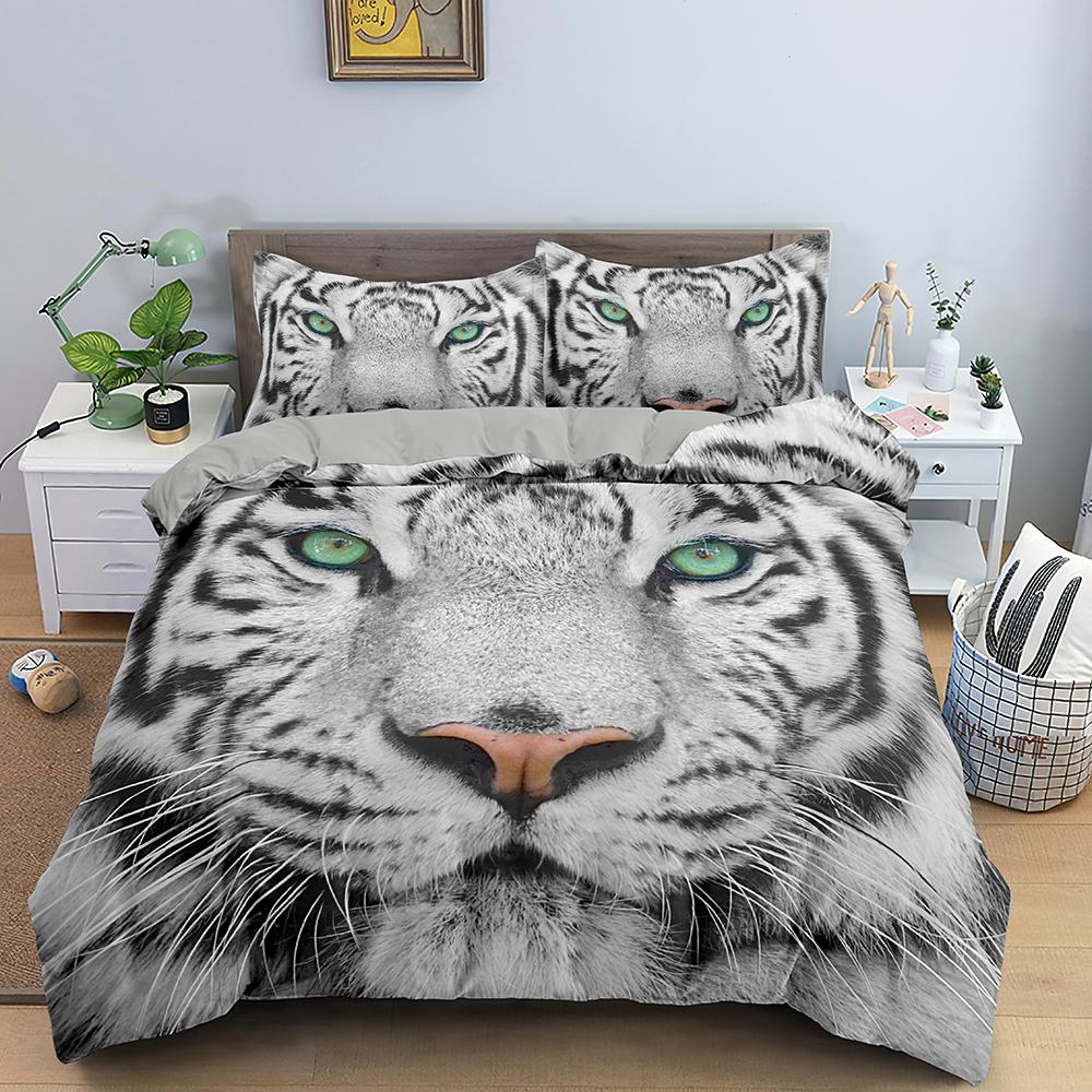Comforter 3D Tiger King Queen White Black Wild Animal Bedding Set For Kids Teens Adults Wildlife Grey 2/3Pcs Soft