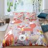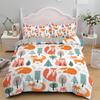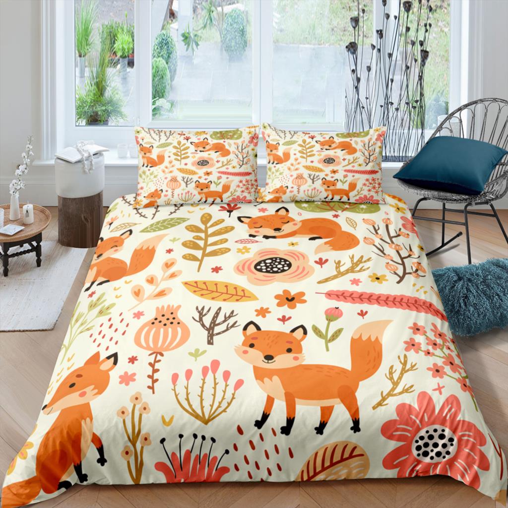 Comforter Cartoon Fox King Queen Lovely Orange Animal Floral Bedding Set Kids Girls Flowers Plant 2/3Pcs