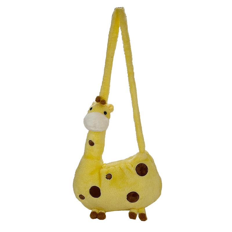 This cute plush giraffe bag features a soft, polyester exterior with a cartoon design, measuring approximately 33*45*8cm in height. Its lightweight and flexible structure include a zip closure, internal pockets for phones and IDs, and a single shoulder strap. Ideal for daily outings or casual school days, it offers easy maintenance with surface wipe cleaning.