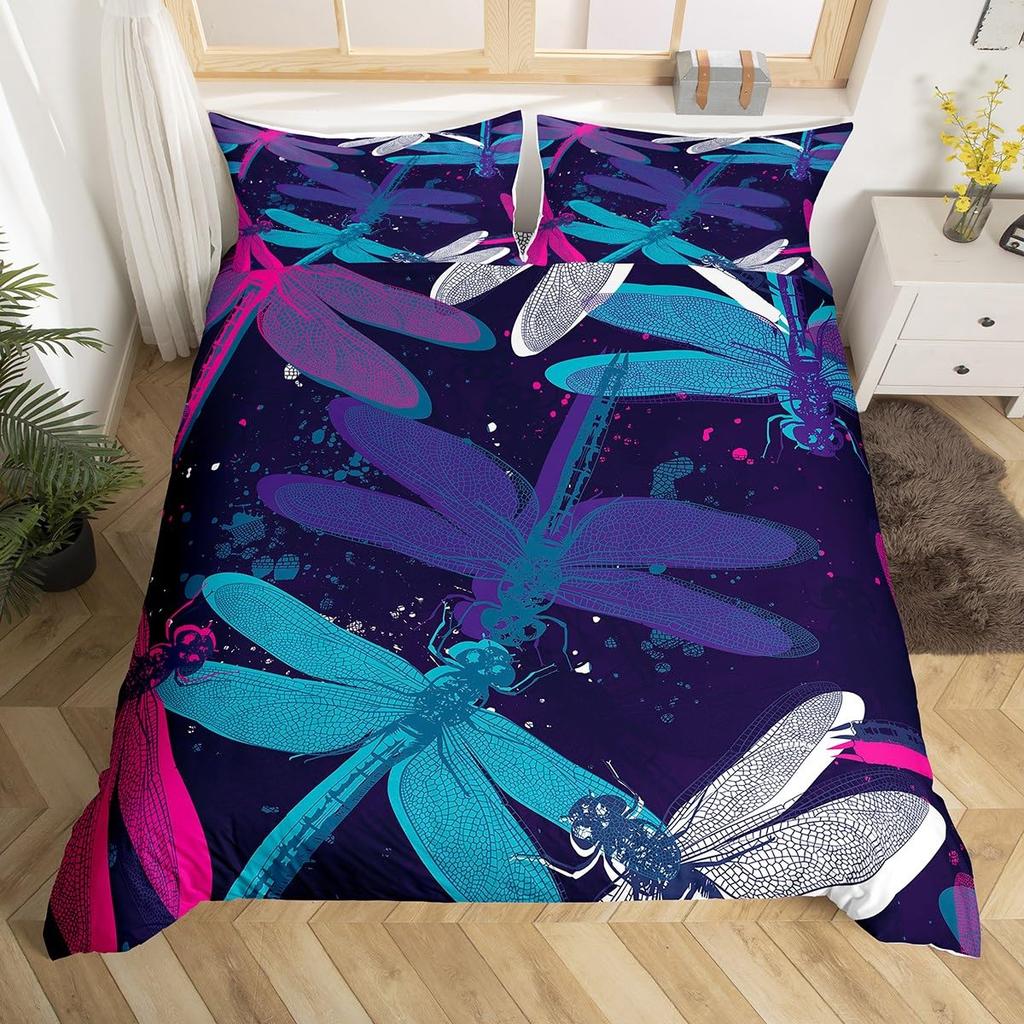 Comforter Colorful Dragonfly Women Kids Girls Floral Botanical Pattern Room Decor Bedding Set Queen King