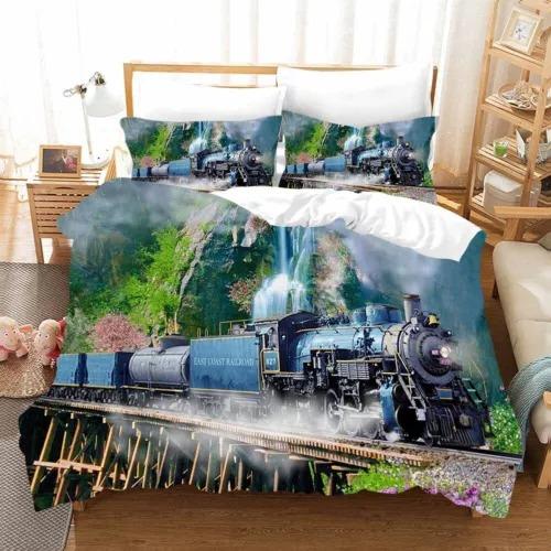 Comforter Steam Train Bedding Set Decoration Gift Suitable For Children Boys Girls Adults. Warm Soft Comfortable Breathable