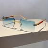 Popular Vintage Rimless Square Sunglasses Women For Men Sun Glasses Punk Pink Shade Luxurious Brand Designer Metal Material Eyeglasses UV400