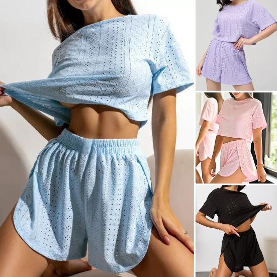 The set includes a casual two-piece ensemble featuring a short-sleeved top and shorts, exuding simplicity and elegance. Perfect for those who prefer a comfortable fit, this home suit can be effortlessly styled for various occasions such as home lounging, parties, office wear, club nights, shopping trips, vacations, workouts, or casual outings.