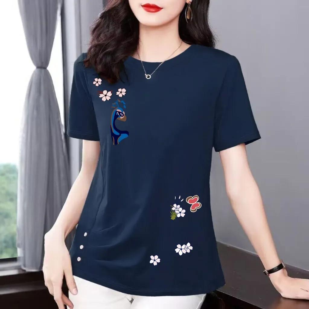 Women's Summer Korean Version Loose Slimming Round Neck Irregular Top Pure Cotton Short Sleeved Slim Fit T-shirt