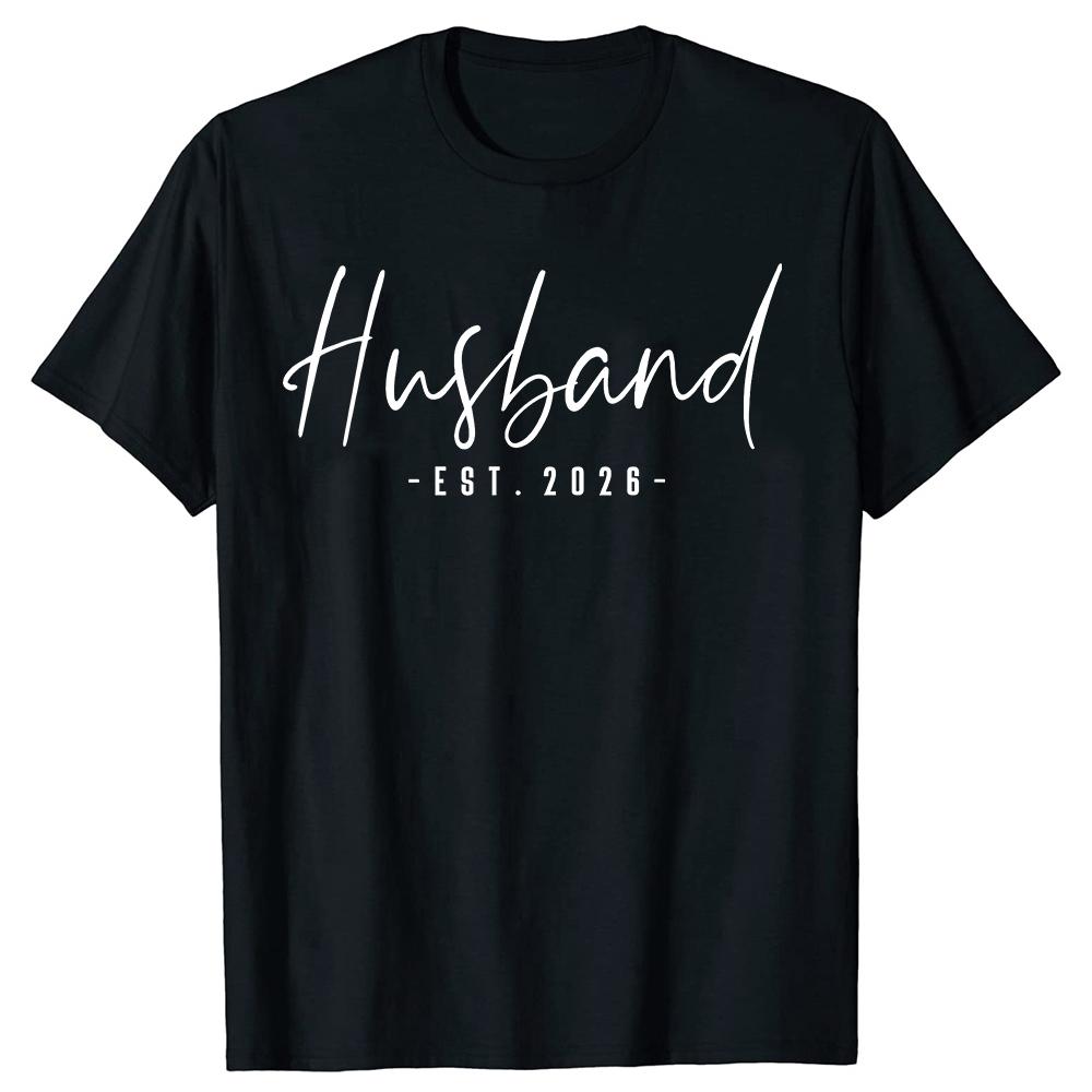 Husband Est 2026 Just Married Wedding Couple 100 Cotton Tshirts Men Fashion Casual Tshirt Loose Oversized Streetwear T Shirt