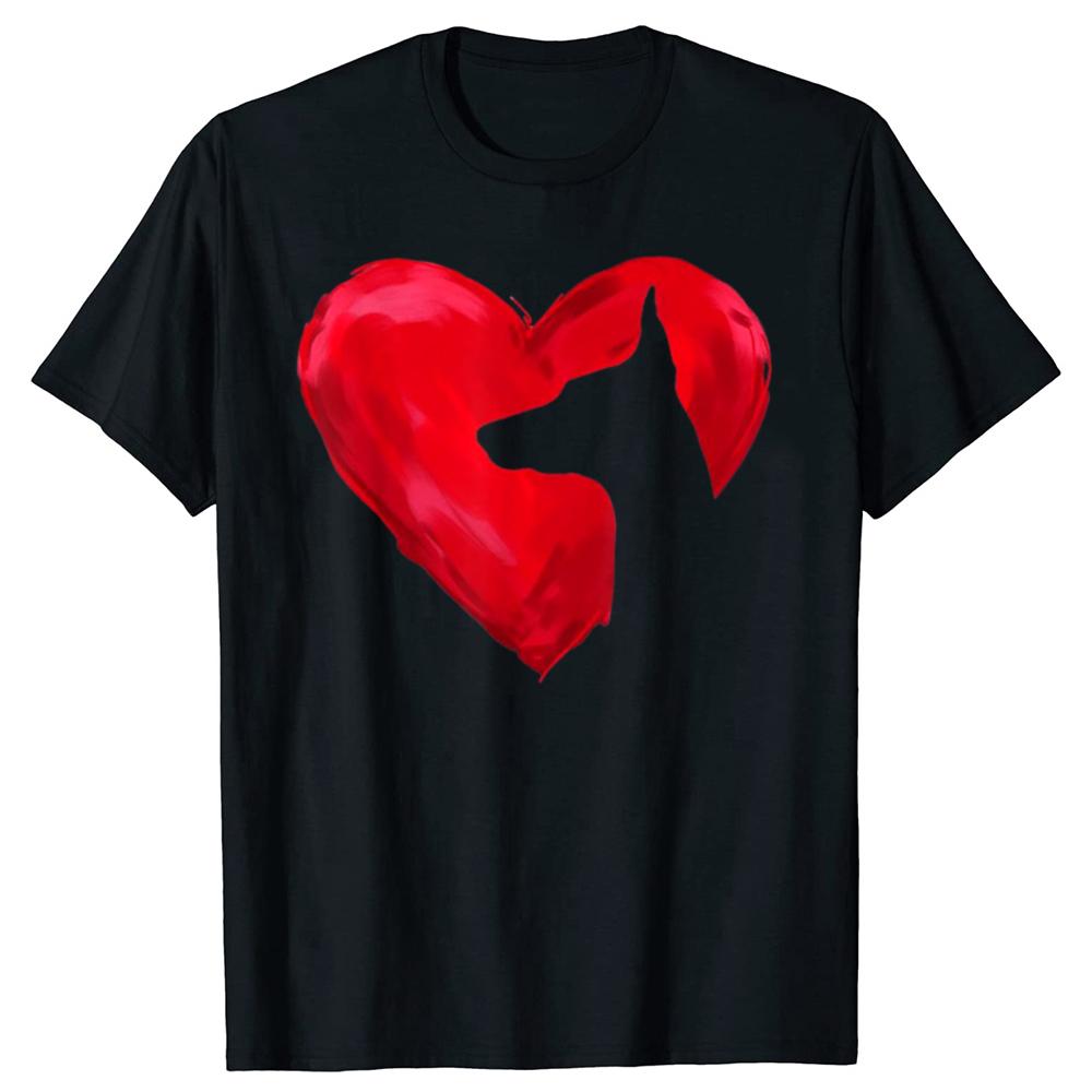 Funny Doberman Heart Valentines Day Dog T Shirts Cotton Streetwear Gifts Mens Clothing Fashion Casual Loose Oversized T Shirt