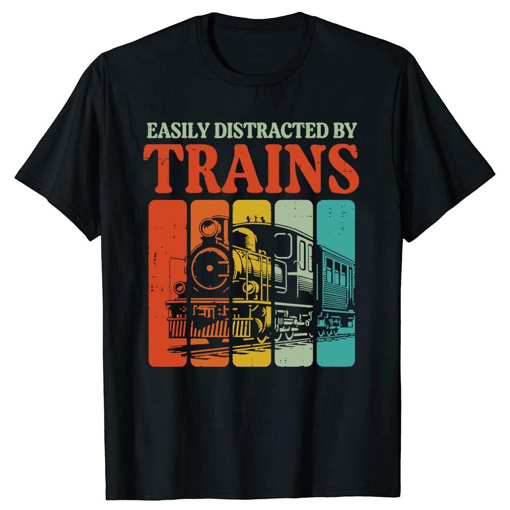 Vintage Easily Distracted By Trains Funny Graphic Tshirt Men Women Hip Hop Oversized T Shirt 100 Cotton Comfort Tshirts