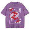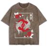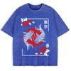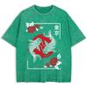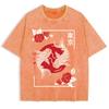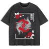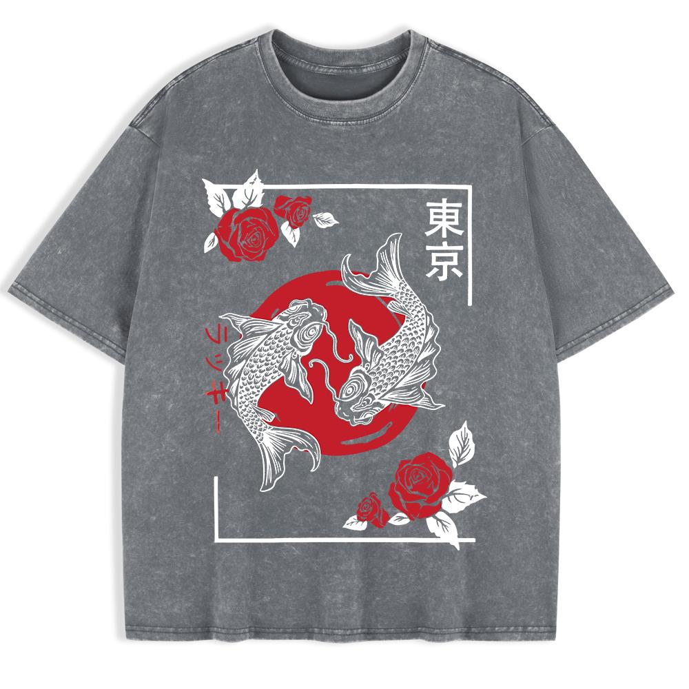 Tokyo Koi Fish Rose Harajuku Washed T-Shirts Mens Cotton Short Sleeve Tops Street O-Neck Oversize T Shirt Summer Clothes