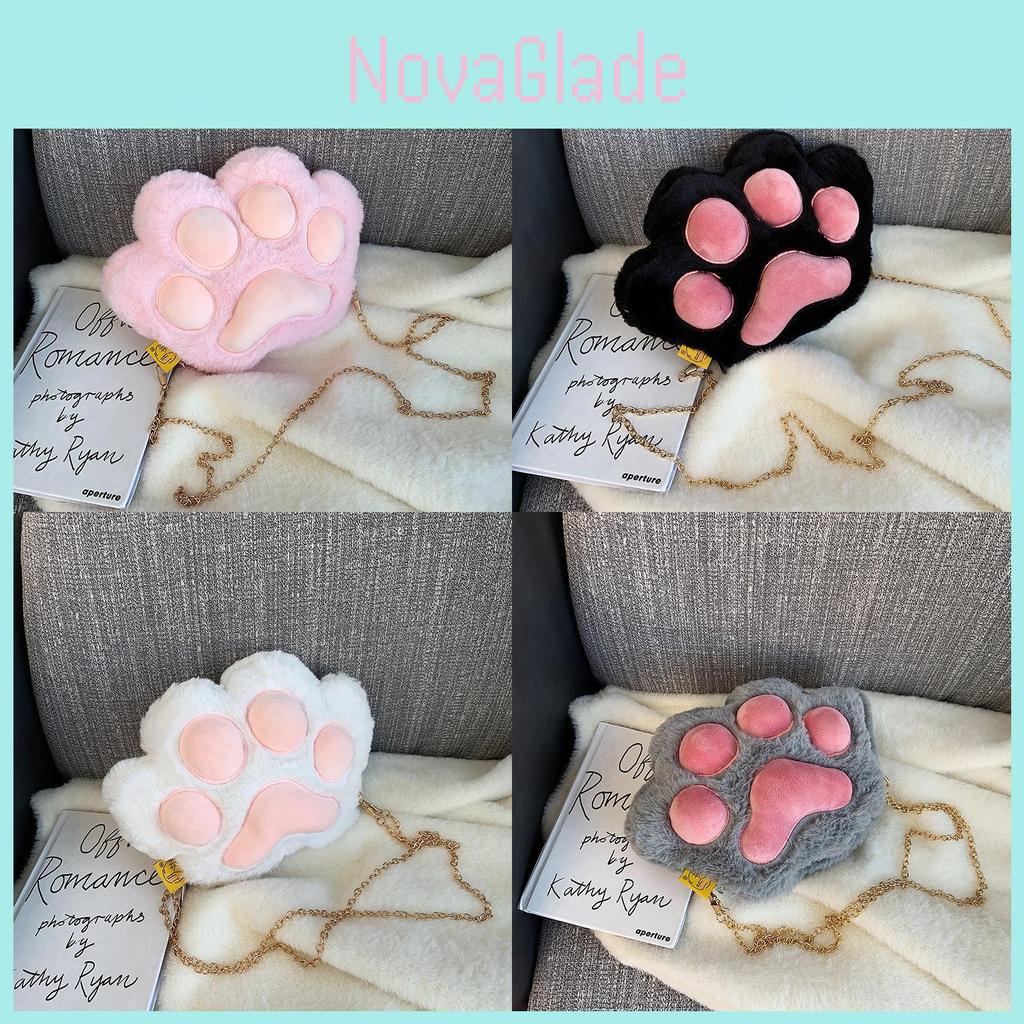 Plush Cat Paw Mini Crossbody Bag With Zipper Closure For Daily Casual Use